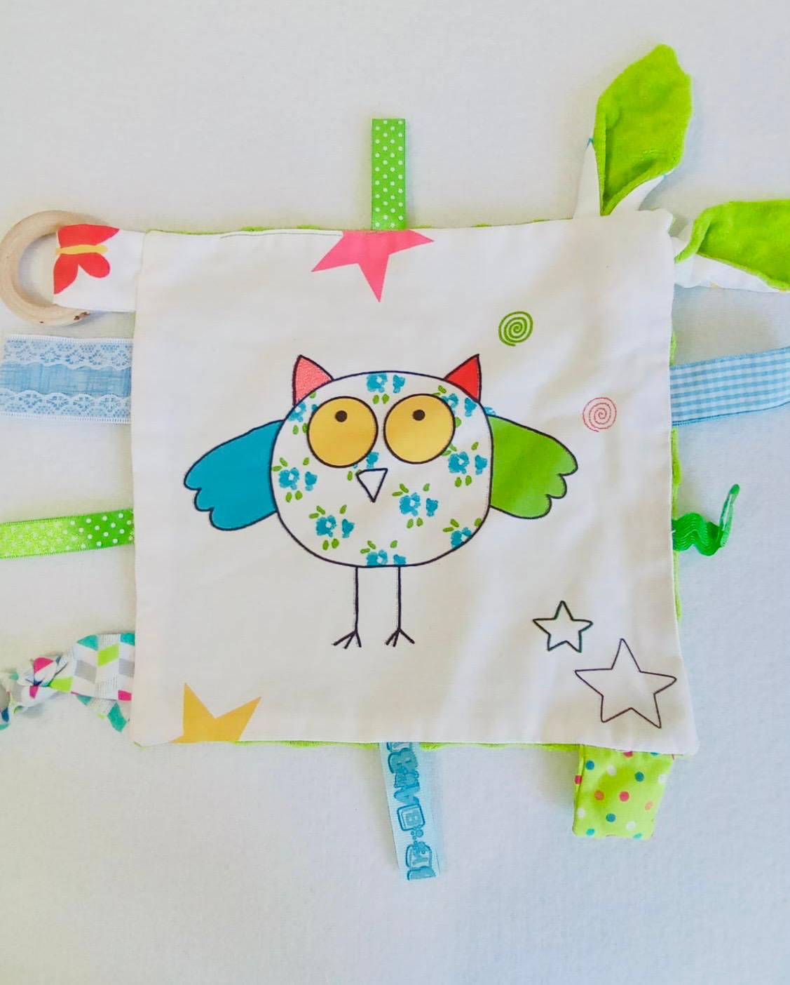 Realizzata artigianalmente con cotone colorato soffice, questa copertina di compagnia 25x25 cm stimola la fantasia, l’immaginazione e i sensi del bambino fin dai primi giorni di vita.