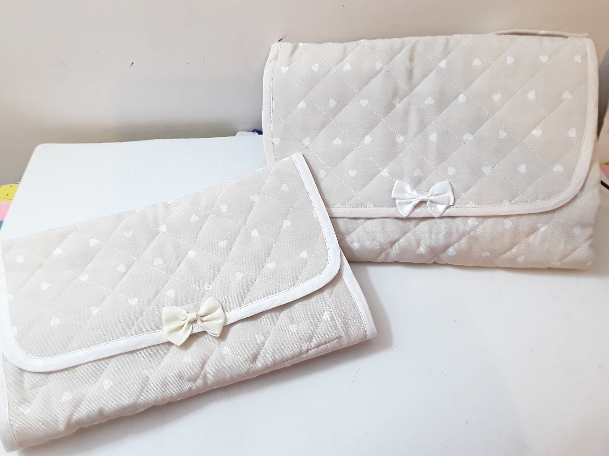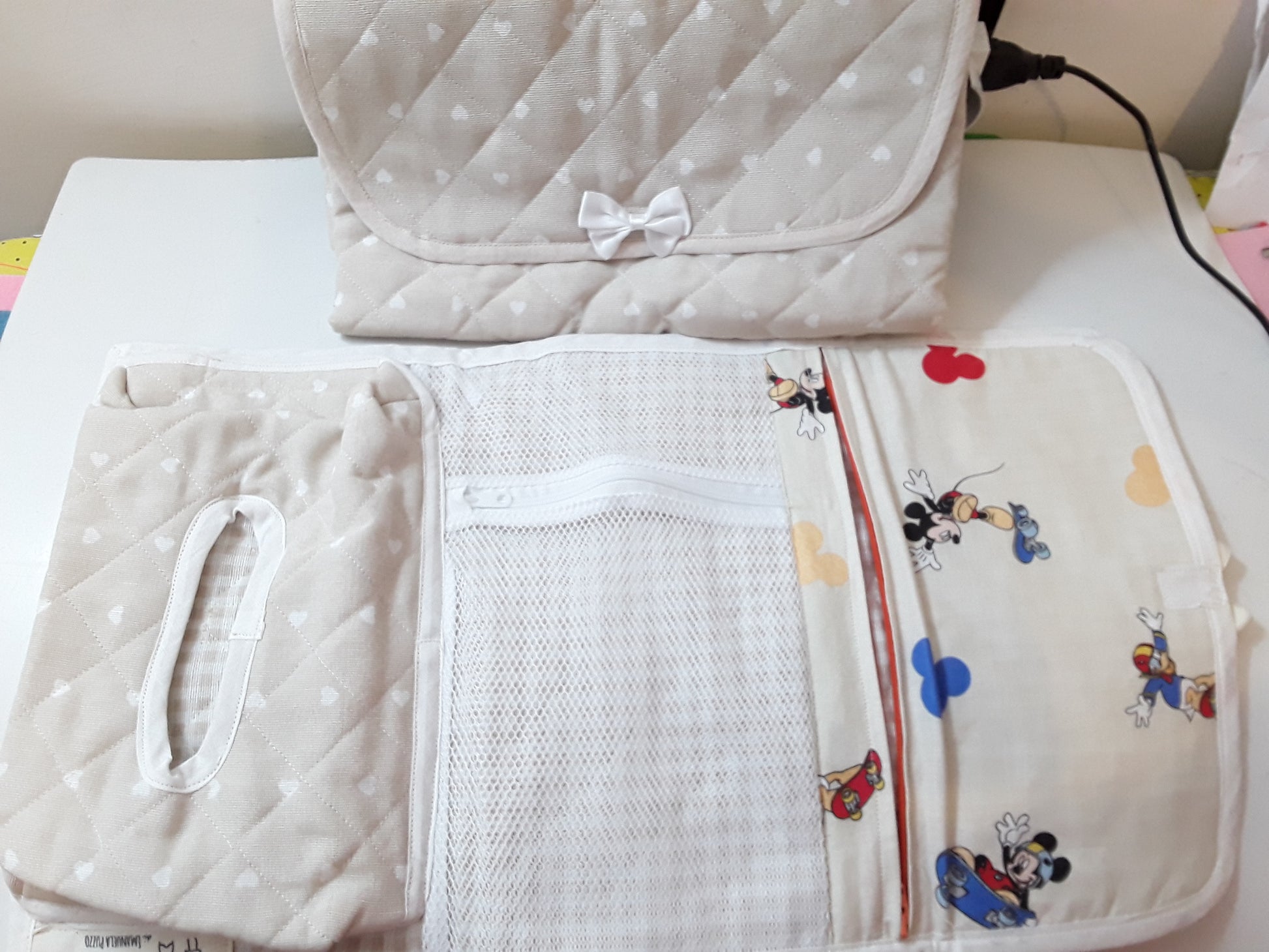 Comodo, compatto e dolcissimo: il nostro fasciatoio portatile è perfetto per il nido, l’asilo o per i primi viaggi con il tuo bambino. Realizzato a mano con tessuto trapuntato e fantasia cartoon, include pratici scomparti per pannolini, salviette e piccoli accessori. Personalizzato con il nome ricamato, è un accessorio indispensabile per ogni genitore che cerca funzionalità e stile in un unico prodotto.