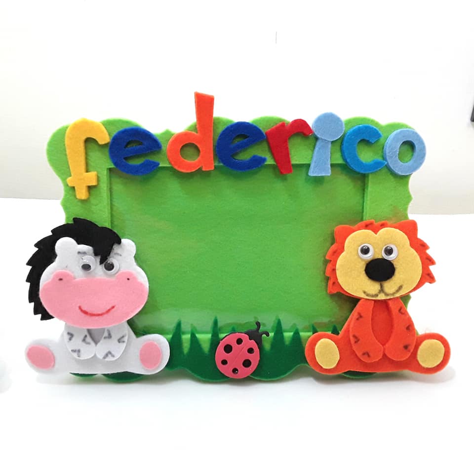 Un’idea regalo dolcissima e colorata: questo portafoto personalizzato in feltro è realizzato interamente a mano con dettagli allegri e teneri animaletti come zebra, leone e coccinella.