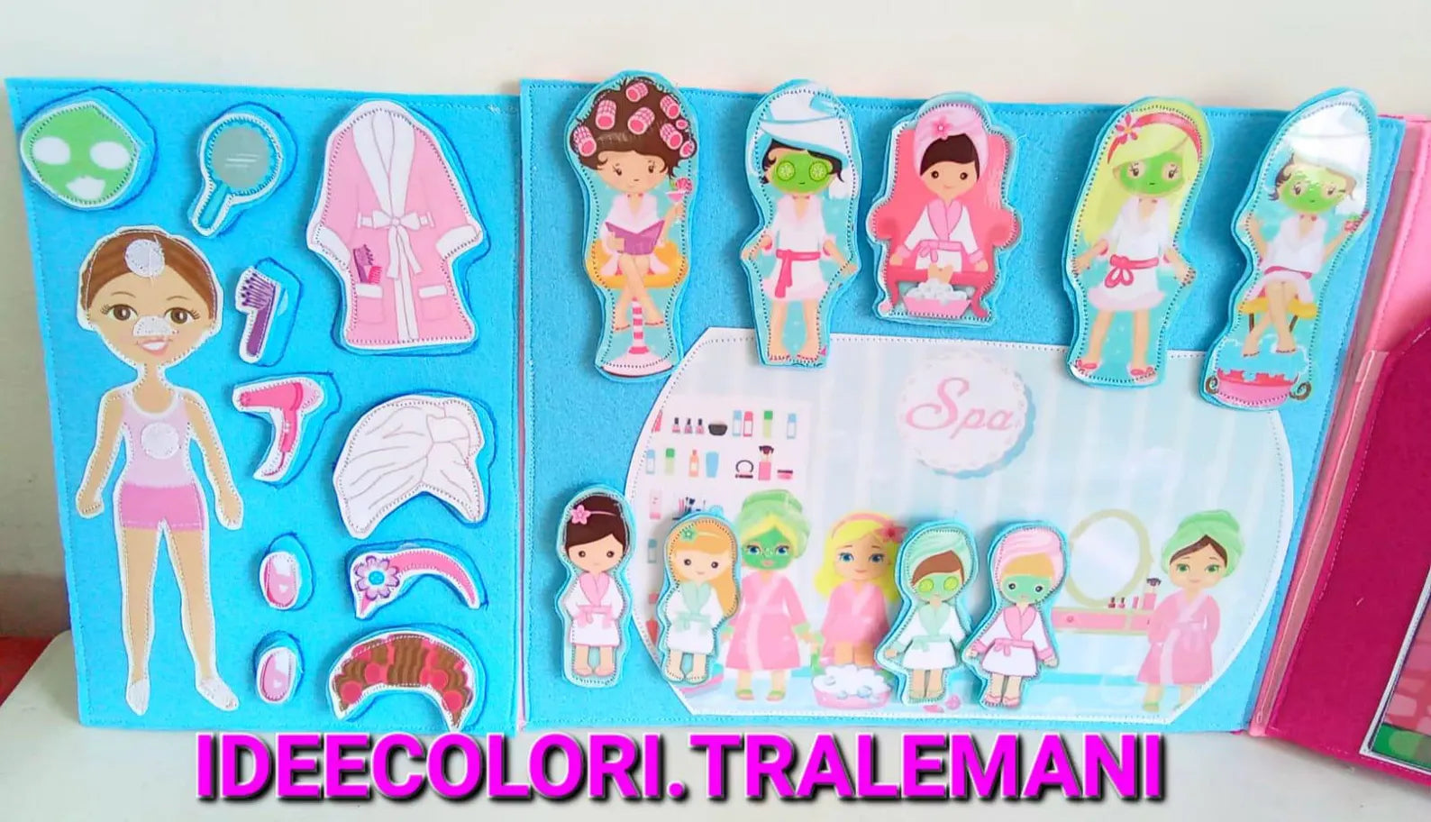 Esplora il nostro adorabile Quiet Book a tema “Spa Party” per bambine, un libro montessoriano per bambine, sensoriale e interattivo che trasforma il gioco in un’esperienza rilassante e creativa! Ispirato al mondo del benessere e della cura personale, questo quiet book include una serie di attività coinvolgenti che replicano un vero spa day: