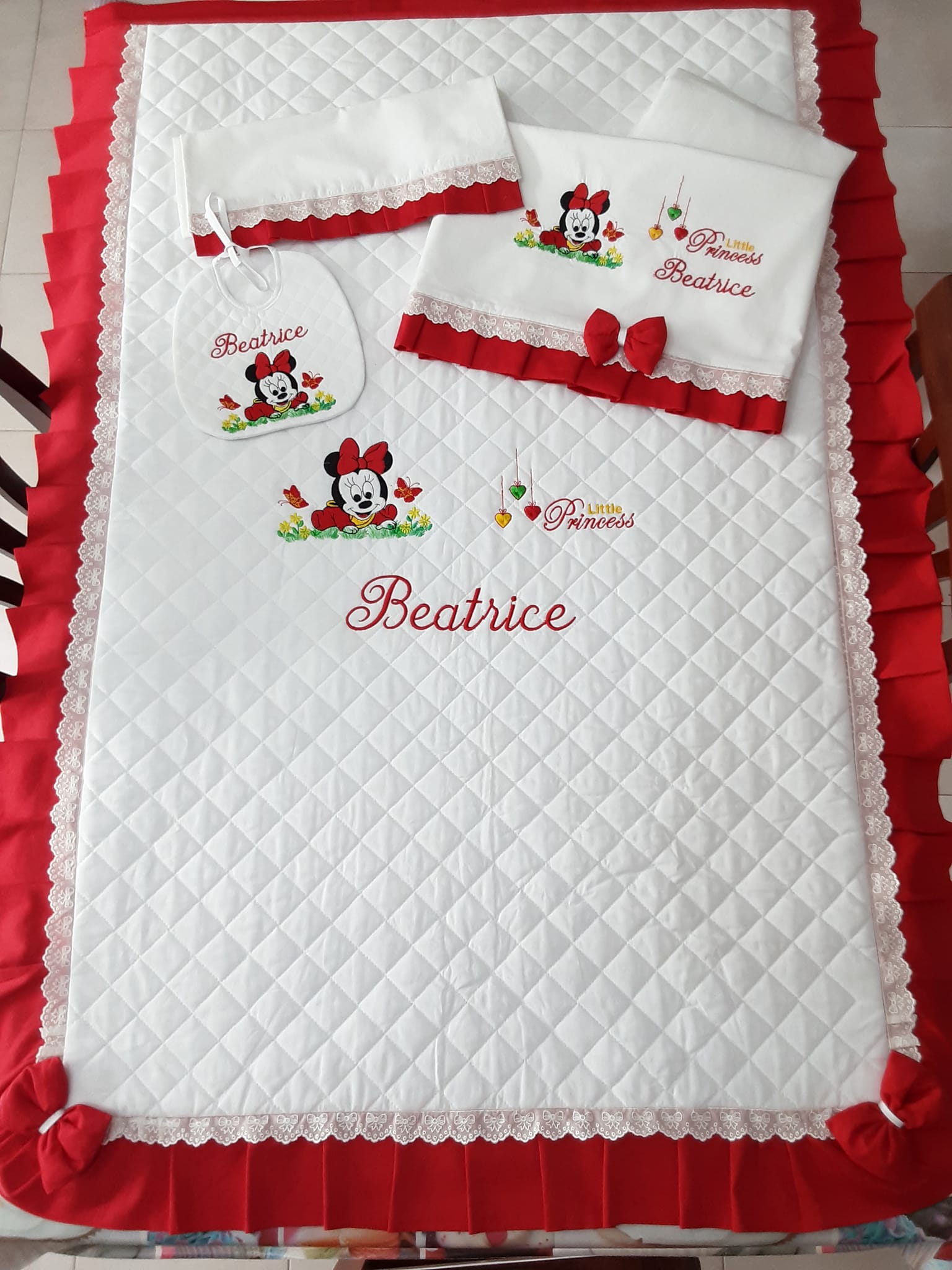 ✨ n.1 copertina trapuntata con bordo in pizzo e volant rosso